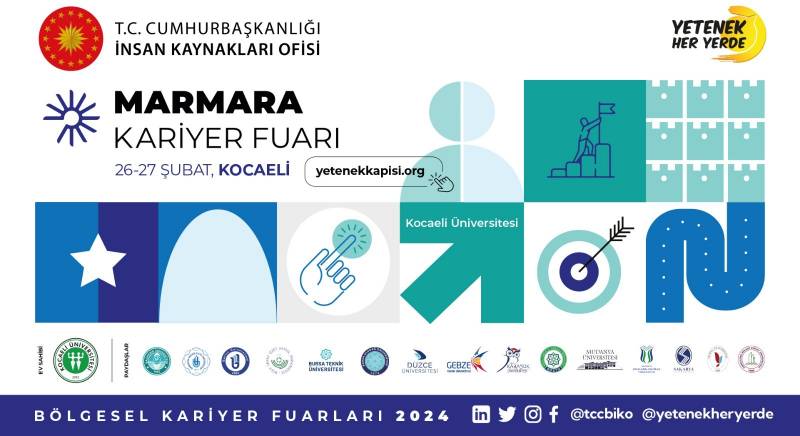 Cumhurbaşkanlığı İnsan Kaynakları Ofisi'nin koordinasyonu ve Kocaeli Üniversitesi ev sahipliğinde 15 üniversitenin paydaşlığında düzenlenecek olan Marmara Kariyer Fuarı (MARMARAKAF), 26-27 Şubat 2024 tarihlerinde Kocaeli Büyükşehir Belediyesi Kongre ve Kültür Merkezi’nde gerçekleştirilecektir. Ulaşım üniversitemiz tarafından sağlanacaktır. Yetenek Kapısı-Kariyer Fuarları sekmesinden başvurunuzu tamamlamayı unutmayın.