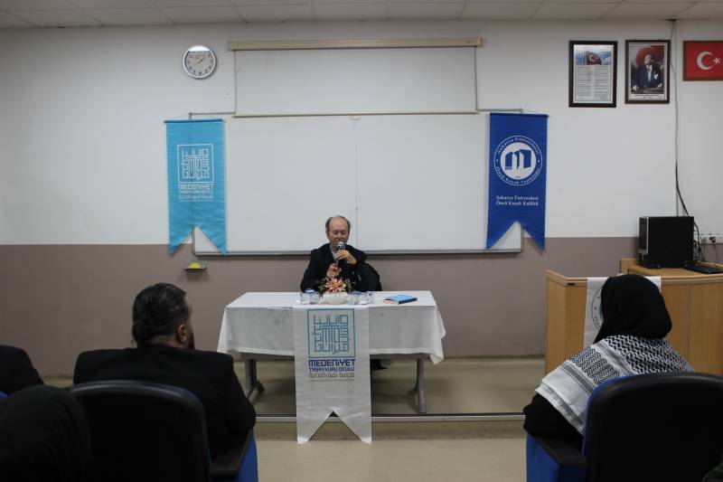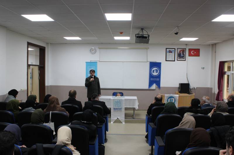 Üniversitemiz Öğrenci Topluluklarından Öncü Kuşak Topluluğu tarafından düzenlenen etkinlikte Gazeteci Yazar Sayın Yusuf Kaplan konuşmasıyla yer aldı. Geleceğin eğitimi ve eğitimcisini inşa etmek için öncelikle zihinsel dönüşümü gerçekleştirmenin önemini vurgulayan Kaplan “kendi tanımlarımızı ve kavramlarımızı üretemediğimiz müddetçe kendi tarihimizi yazamayız. Batı ve Doğu felsefelerinin düşüncelerinden hareket ederek kendi felsefemizi şekillendirebiliriz. Kadim kültürümüzün ilim, irfan ve hikmet aşamalarını geçmesi halinde tekrar tarih yazmaya başlayan eğitimci bir nesil ortaya çıkabilir.” ifadelerini kullandı. Konuşmasının ardından Dekanımız Sayın Prof. Dr. Rüştü Yeşil tarafından hediye takdim edilerek etkinlik sonlandırıldı.