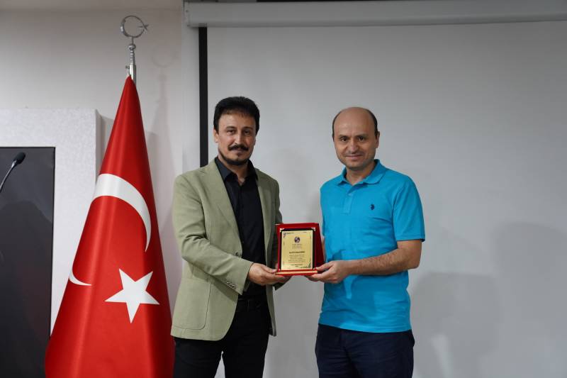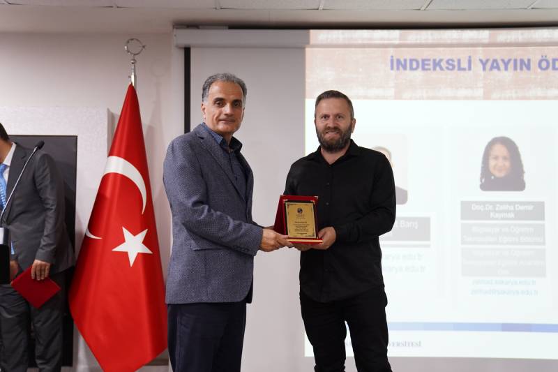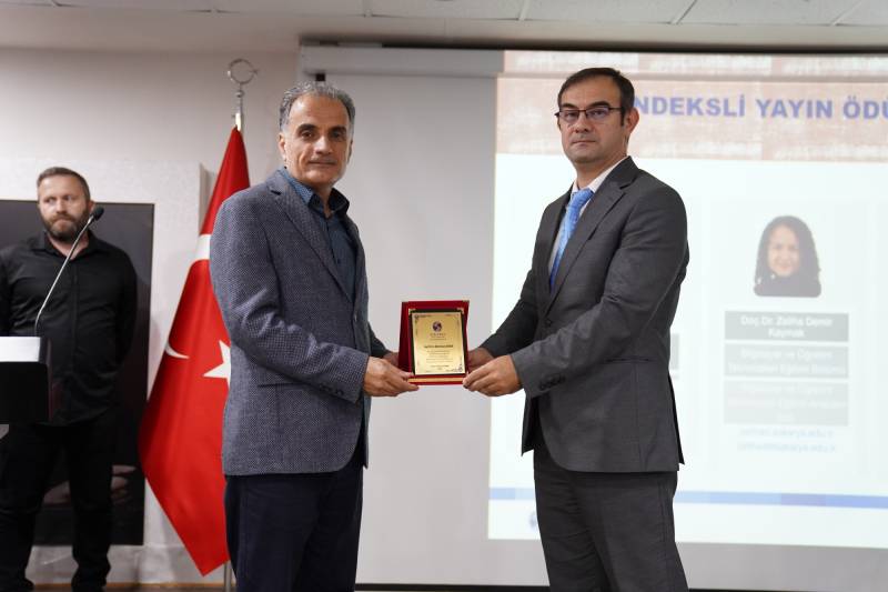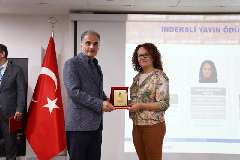 Konuşmaların ardından Fakültemiz genelinde 2023-2024 eğitim öğretim yılında en çok nitelikli yayın (Q1-Q2-Q3-Q4) yapan ve kabul alan TÜBİTAK 1001, 3005 ve AB projelerinde yürütücü olan öğretim elemanlarımıza plaket takdim törenine geçildi. Nitelikli Yayın başlığında Prof. Dr. Mehmet Barış Horzum, Prof. Dr. Eyüp Çelik ve Doç. Dr. Zeliha Demir Kaymak plaketlerini SAÜ Rektörü Sayın Prof. Dr. Hamza Al’ın elinden aldılar. Projeler başlığında ise SAÜ tarihinde ilk kez kabul alan AB Jean Monnet Projesi ile Prof. Dr. Mustafa Bayrakçı, TÜBİTAK 1001 projeleri kabul alan Prof. Dr. Mehmet Barış Horzum, Doç. Dr. Canan Sola Özgüç, Doç. Dr. Zeliha Demir Kaymak ve Öğr. Gör. Dr. Aysel Ferah Özcan; TÜBİTAK 3005 projeleri kabul alan Prof. Dr. Şenol Beşoluk, Prof. Dr. Mehmet Barış Horzum, Doç. Dr. Elif Atabek Yiğit ve Dr. Öğr. Ü. Ali İlya’ya plaketleri Dekanımız Prof. Dr. Hüseyin Çalışkan ve Dekan Yardımcılarımız Doç. Dr. Dursun Aksu ile Doç. Dr. Hilal İlknur Tunçeli tarafından takdim edildi.