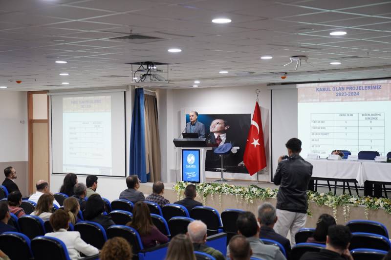SAÜ Rektörü Sayın Prof. Dr. Hamza Al, akademik ve idari tüm personele Araştırma Üniversitesi olma yolunda verdikleri katkı ve gösterdikleri performans için teşekkürlerini ileterek başladığı konuşmasında ‘’Üç konuyu çok önemsiyoruz. Bunların başında projeler geliyor. Daha sonra girişimcilik ve hedefler, üniversitemizin önemsediği en temel konular. Proje bir sayıdan ibaret değil. Bir öğrencinin bir konuyu ele alması onu bir sorun olarak görmesi ve ona bir çözüm üretmesi başlı başına değerli bir şey. Mevlana’nın da dediği gibi yeni şeyler yapmamız gerekiyor, eskiden beri yapageldiklerimizi de hedeflerimiz doğrultusunda, daha iyi yapmamız lazım. Bunun için de paradigmalarımızı değiştirmemiz lazım. Bizler tarım toplumunda çağı yakalamıştık, sanayi toplumunu ıskalamıştık inşallah yeni aşamayı yeni gelişmeleri ıskalamayız ve insanlık tarihinde tekrar büyük söz hakkı elde edeceğiz. Sakarya Üniversitesi de insanlığın hedeflerine hizmet eden ve bunun gururunu yaşayan bir üniversite olacak’’ dedi.