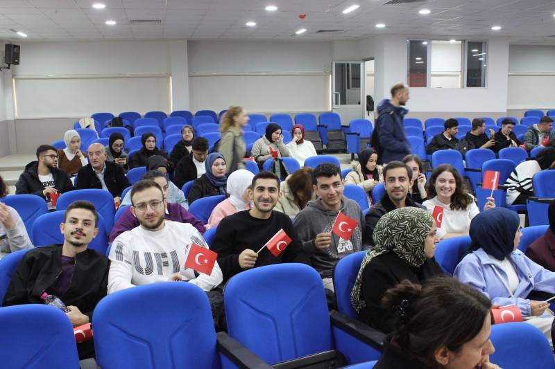 Cumhuriyetimizin 101. yılını coşkuyla kutladığımız programımıza, Cumhuriyetimizin kurucusu Ulu Önderimiz Gazi Mustafa Kemal Atatürk ve şehitlerimizin aziz hatırasına saygı duruşu ve ardından İstiklal Marşı ile başlandı. Ardından günün anlam ve önemine ilişkin konuşmalarını yapmak üzere Dekan Yardımcılarımız Doç. Dr. Dursun Aksu ve Doç. Dr. Hilal İlknur Tunçeli kürsüye çıktılar.