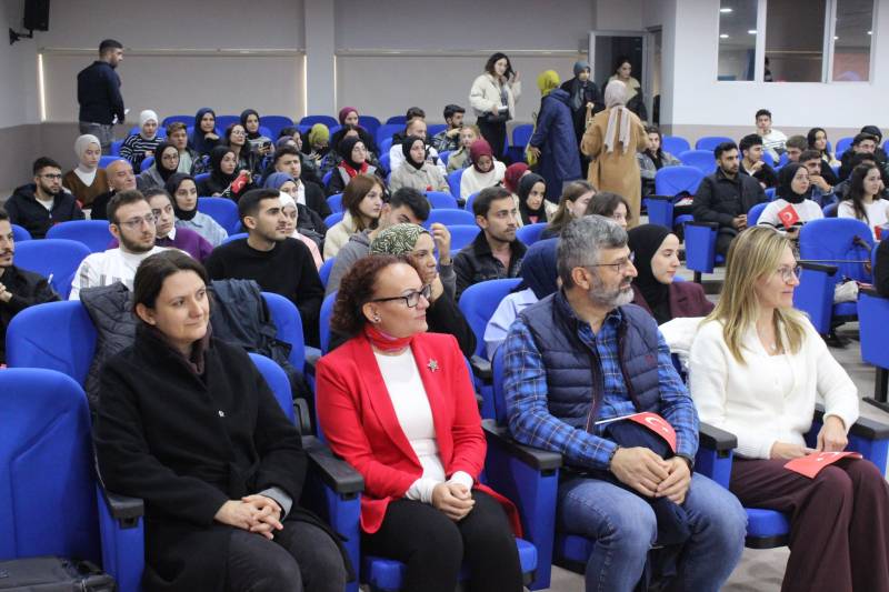 Dekan Yardımcısı Doç. Dr. Hilal İlknur Tunçeli ise “ 29 Ekim 1923’te Mustafa Kemal Atatürk ve silah arkadaşları, yalnızca yeni bir yönetim biçimi değil, yepyeni bir gelecek kurdular. Bağımsızlık ve çağdaşlık yolunda atılan bu büyük adım, aslında ülkemizin aydınlık yarınları için bir ışık oldu. Cumhuriyetin en büyük kazanımlarından biri de kadınların toplumdaki yerini güçlendirmesidir. Cumhuriyetle birlikte kadınlar, siyasi, sosyal ve ekonomik hayatta hak ettikleri yere ulaşabilmek için büyük kazanımlar elde ettiler. Bu haklar sadece bireysel kazanımlar değil, toplumsal aydınlanmanın en somut göstergeleridir. Mustafa Kemal Atatürk’ün dediği gibi, "Fikri hür, vicdanı hür, irfanı hür nesiller yetiştirmek bizim en büyük hedefimizdir." Mesleğe başladığınızda, ülkemizin dört bir yanında yetiştireceğiniz her bir vatan evladı Cumhuriyetimizin geleceği için umut ışığı ve bekçisi olacaktır. Cumhuriyeti bizlere kazandıran başta Gazi Mustafa Kemal Atatürk ve aziz şehitlerimizi saygı ve rahmetle anıyoruz.” İfadelerine yer verdi.