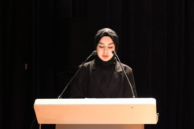 Programda, Eğitim Fakültesi Türkçe Öğretmenliği bölümü 4. sınıf öğrencisi Deryanur Yılmaz, öğretmenlik mesleğinin tarihçesi üzerine konuşma yaparken aynı bölümden Samet Güner ‘Öğretmen’ adlı şiiri seslendirdi.