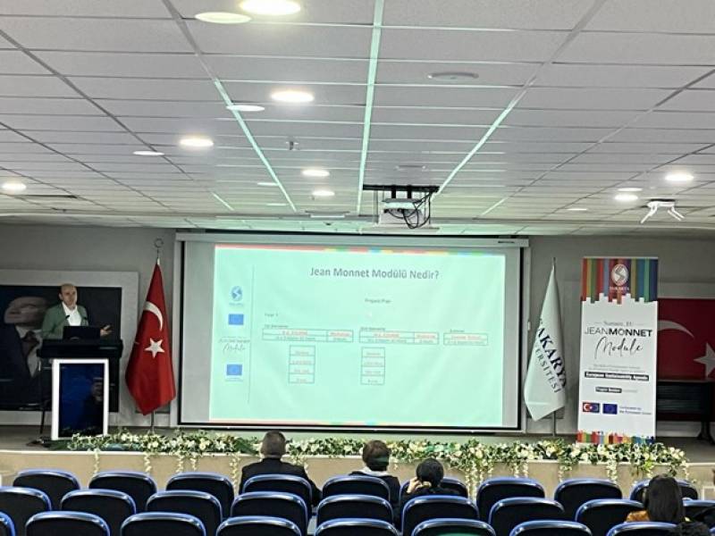 29 Nisan 2025 Salı günü saat 14.00'te Sakarya Üniversitesi Konferans Salonu önemli bir etkinliğe ev sahipliği yaptı. “Avrupa Birliği Jean Monnet Eylemleri” konulu seminere, Eğitim Fakültesi’nin değerli öğretim elemanları yoğun ilgi gösterdi.