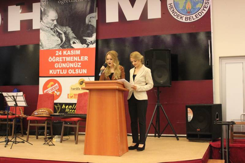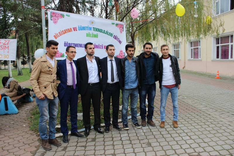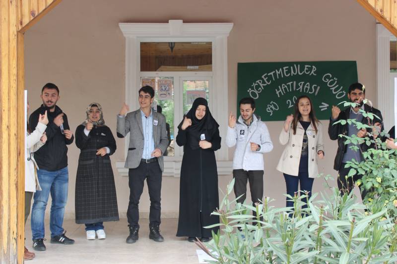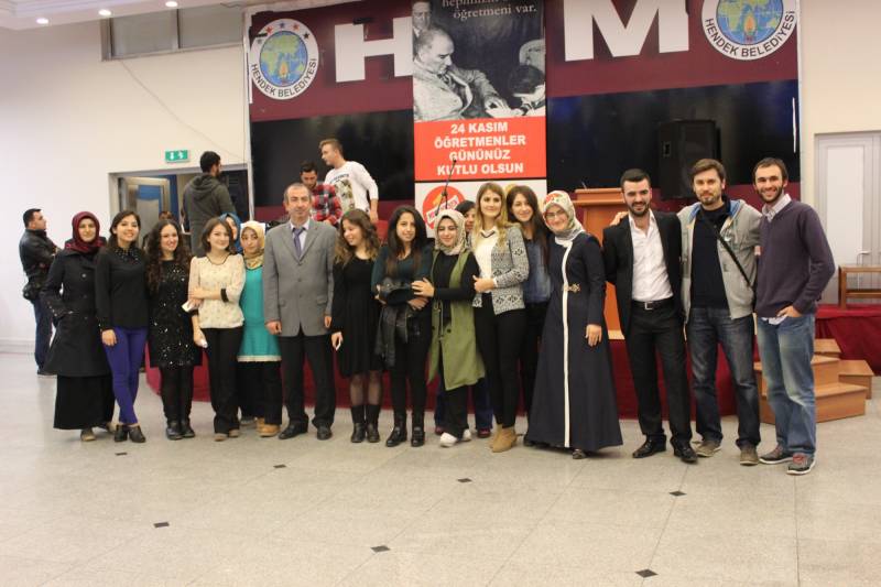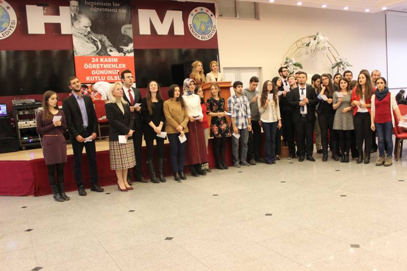 24 KASIM ÖĞRETMENLER GÜNÜ FAKÜLTEMİZDE COŞKUYLA KUTLANDI. GÜN İÇİNDE ÖĞRETMEN ADAYLARIMIZIN FAKÜLTE BAHÇESİNDE OLUŞTURDUKLARI STANDLAR, SİNEVİZYON GÖSTERİSİ VE BİR TAKIM ETKİNLİKLERLE ÖĞRETMENLİK MESLEĞİ BÖLÜMLER BAZINDA TEMSİL EDİLDİ. ÖĞRETMENLER GÜNÜ KUTLAMASI, REKTÖRÜMÜZ VE YARDIMCILARI İLE HENDEK PROTOKOLÜNÜN DE KATILIMIYLA AKŞAM HENDEK GENÇLİK MERKEZİNDE YEMEKLİ BİR TOPLANTI İLE DEVAM ETTİ. DAHA SONRASINDA ÖĞRETMEN ADAYLARIMIZIN KENDİ ARASINDAKİ EĞLENCELERİYLE GECE SONA ERDİ.