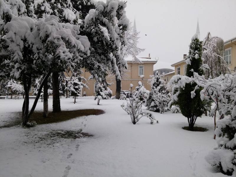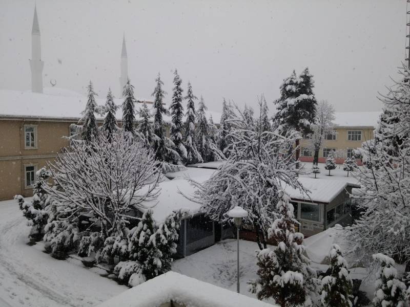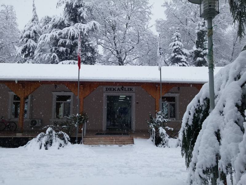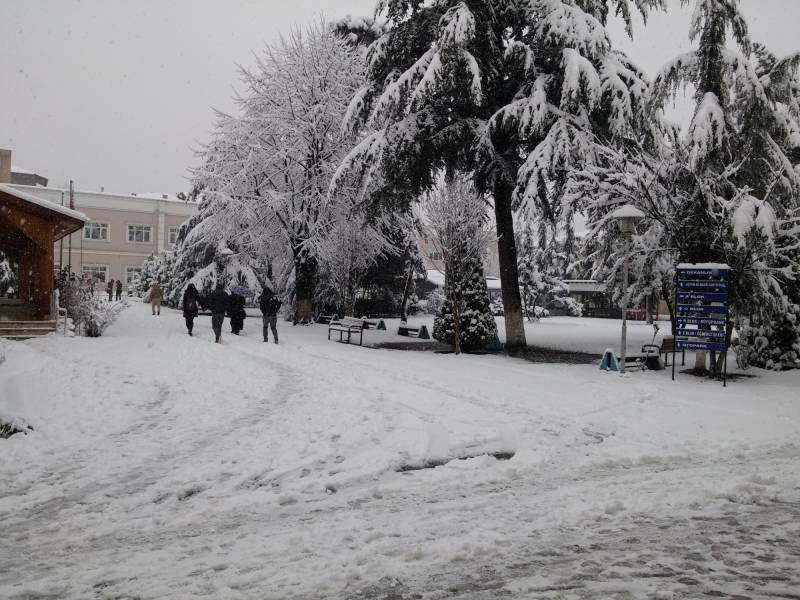 Dün gece itibariyle ilçemizde başlayan kar yağışları ile beraber fakültemizde muhteşem kar manzaları oluştu.
