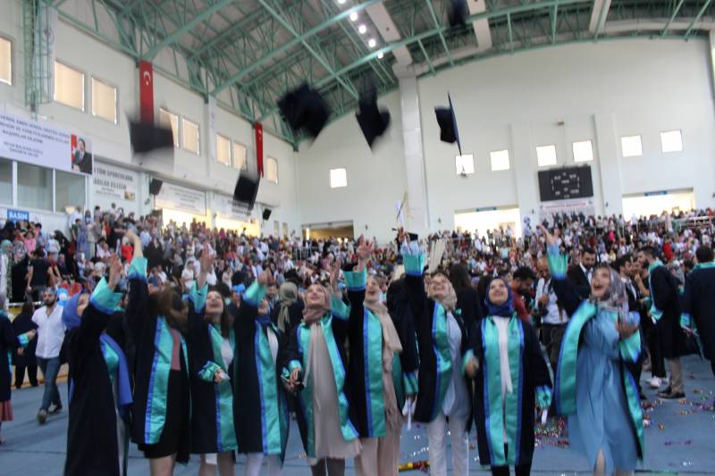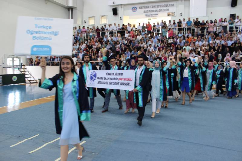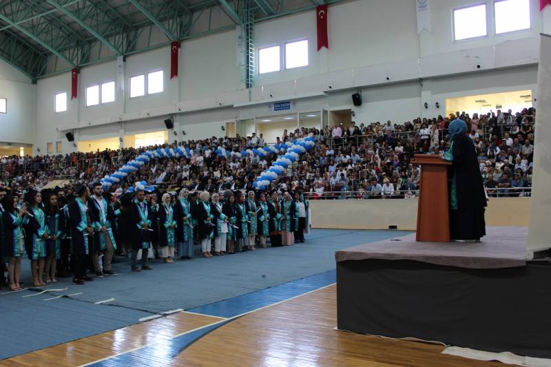 Dereceye girenlere plaket takdiminin ardından, mezunlar fakülte birincisi Fatma Canlı eşliğinde öğretmen yemini ettiler. Tören mezunların kep fırlatması ile sona erdi.
