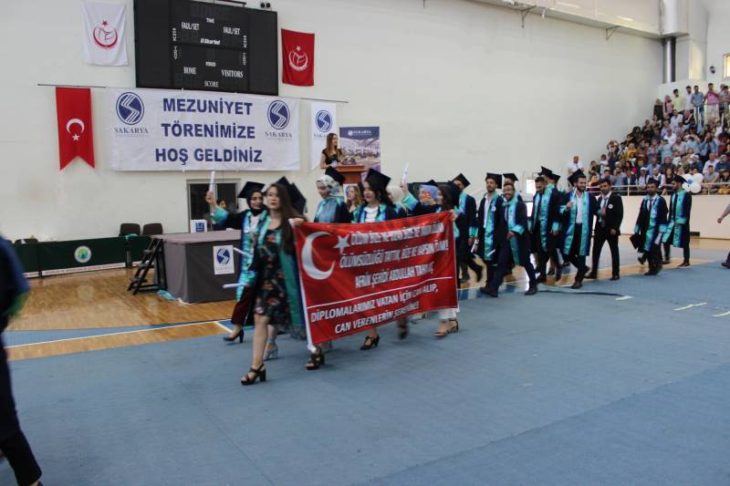 Hendek Kapalı Spor Salonunda 3 Temmuz Salı günü yapılan mezuniyet törenine SAÜ Rektör Yardımcısı Prof. Dr. Kadir Ardıç, Hendek Kaymakamı Orhan Burhan, Hendek Cumhuriyet Başsavcısı Adem Aydemir, Eğitim Fakültesi Dekanı Prof. Dr. Firdevs Karahan, EPDAD (Eğitim Fakülteleri Eğitim Programlarını Değerlendirme ve Akreditasyon Derneği) Başkanı Prof. Dr. Cemil Öztürk, öğrenciler ve aileler katıldı.