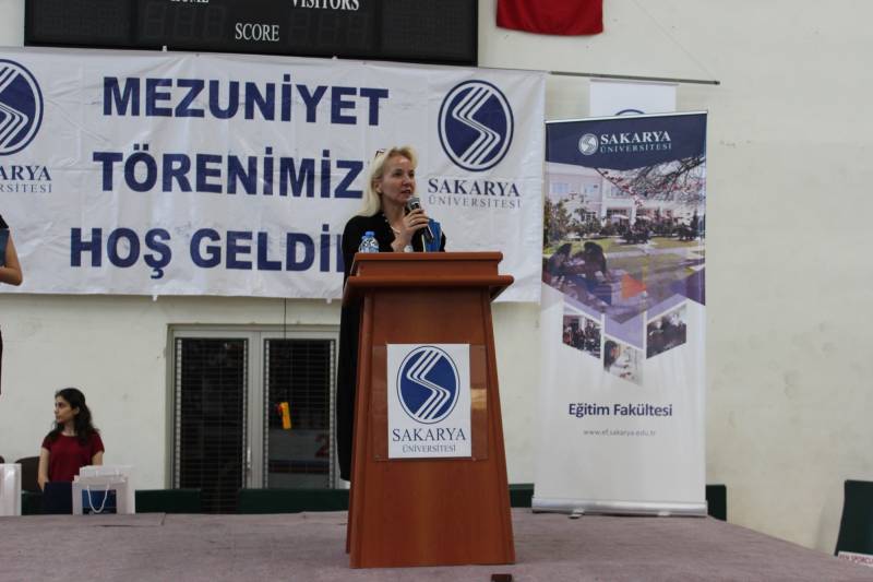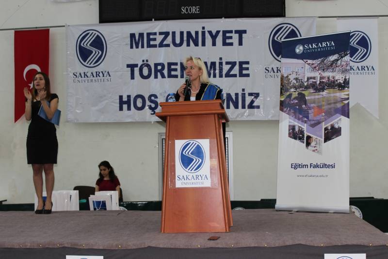 Saygı duruşu ve İstiklal Marşı’nın okunmasıyla başlayan törenin açılış konuşmasını Dekan Prof. Dr. Firdevs Karahan yaptı. Bu yıl 10 lisans programında 733 öğrenciyi mezun ettikleri bilgisini veren Prof. Dr. Karahan, “SAÜ Eğitim Fakültesi olarak misyonumuz, evrensel nitelikte bilgi ve teknoloji üreten araştırmacı, katılımcı, paylaşımcı, özgün ve estetik değerlere sahip, çağdaş bir öğretim kültürü oluşturmak ve mesleki açıdan yetkin, toplumsal değerlere saygılı bireyler yetiştirmektir” diye konuştu.