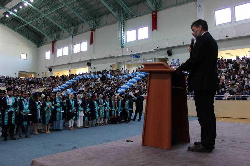 Mezunlara tavsiyelerde bulunan Prof. Dr. Ardıç “Eğitim Fakültesi 21 yıldan beri eğitim-öğretim hayatına devam eden köklü bir fakültemiz. Bu büyük ailenin ferdi olmaktan gurur duymanızı arzu ediyoruz. Sizler bu fakülteden mezun olarak birer eğitimci oldunuz. Ralp Waldo Emerson’un dediği gibi ‘Yolun götürdüğü yere değil, hiç yolun olmadığı yere gidin ve orada iz bırakın”. Yolun olduğu yere değil, yolun olmadığı yere gidin ve iz bırakın. Asıl önemli olan budur. Kariyer basamaklarında ilerleyeceksiniz. Kariyer basamaklarında ilerlemek dağa çıkmaya benzer. Dağa çıkarken hep yukarıya doğru tırmanmazsınız. Bazen yana, bazen aşağıya inmek ve sonra yukarıya çıkmak gerekebilir. Dolayısıyla gelecek hayatınızda inişli çıkışlı bir yolunuz olacak, zahmetli bir süreç yaşayacaksınız. Bunun ilacı sebatla çalışmak ve sabır göstermektir” ifadelerini kullandı.