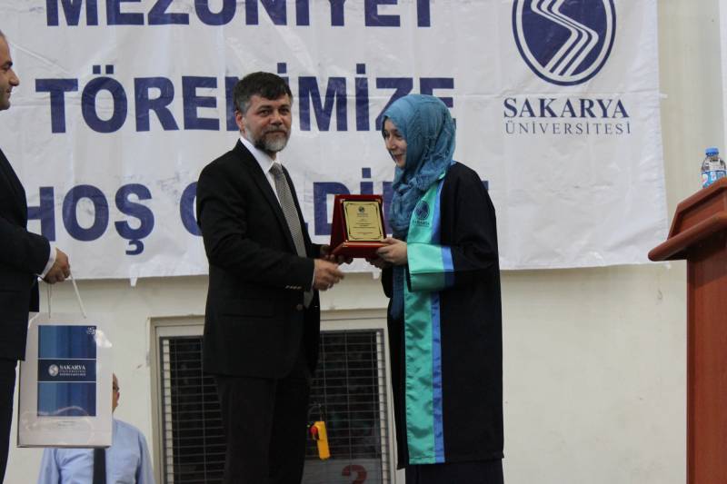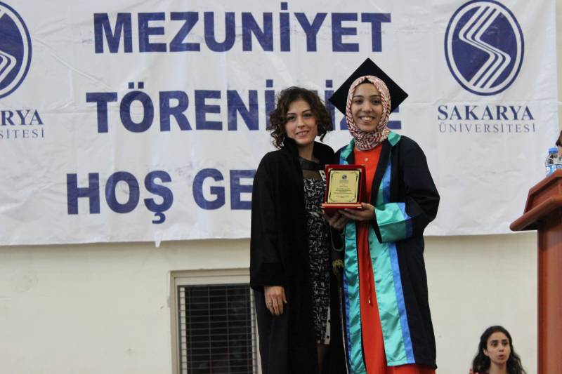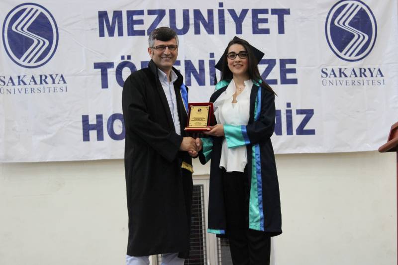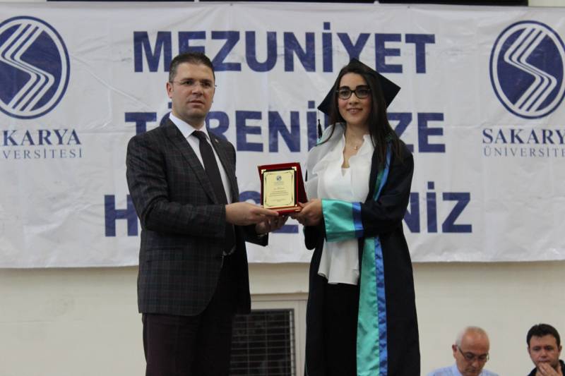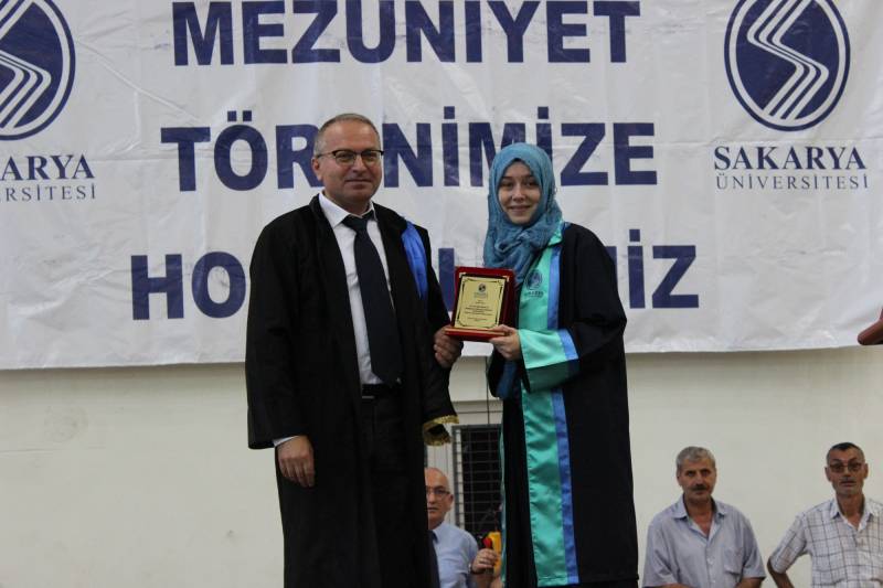 Daha sonra dereceye giren mezun öğretmen adaylarına plaket verildi. Fakülte üçüncüsü Okul Öncesi Öğretmenliği Bölümü mezunu Hikmet Sena Ak, plaketini ve diplomasını Dekan Prof. Dr, Firdevs Karahan’ın elinden aldı. Fakülte ikincisi Sınıf Öğretmenliği Bölümü mezunu Sena Tandaç Güneş, plaketini ve diplomasını Kaymakam Orhan Burhan’ın elinden aldı. Fakülte birincisi Fatma Canlı da plaketini ve diplomasını Rektör Yardımcısı Prof. Dr. Kadir Ardıç ve Hendek Cumhuriyet Başsavcısı Adem Aydemir’in elinden aldı.
